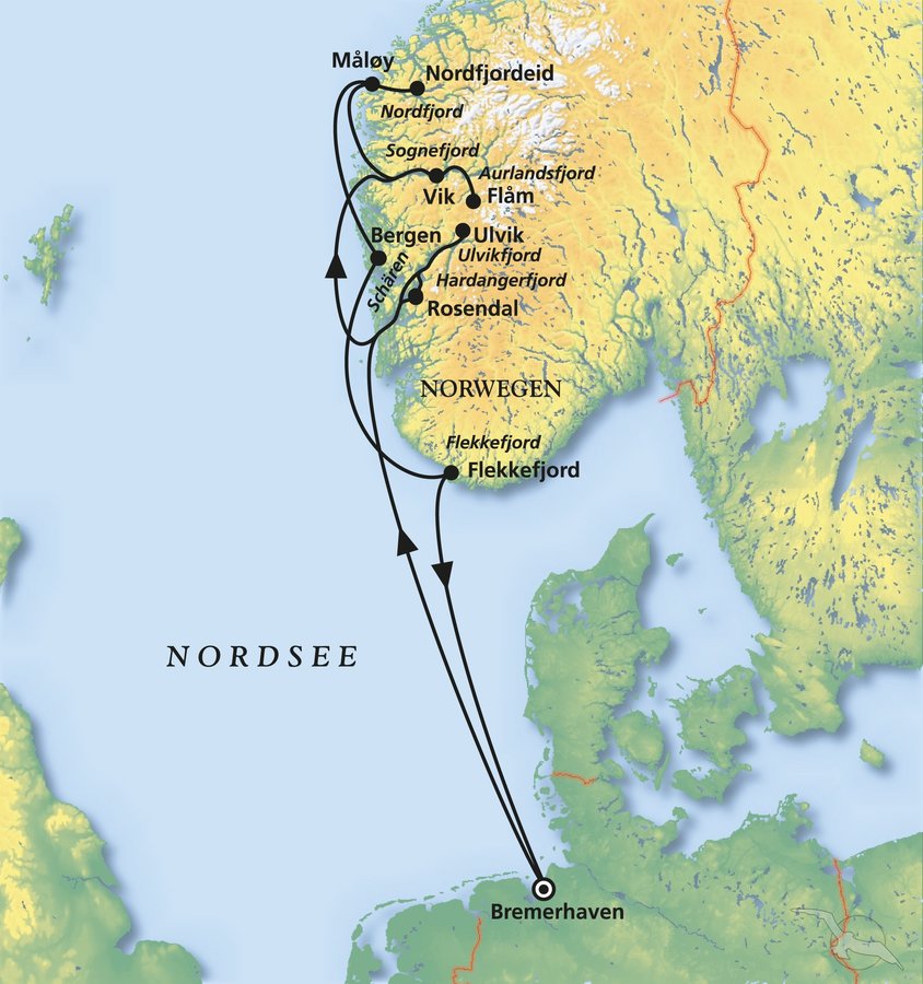 Reise: Reise-Nr.: DEU066 - Kurs auf die Fjordwelt Norwegens Datum: Vom 08.06.2022 bis zum 15.06.2022 (7 Tage)