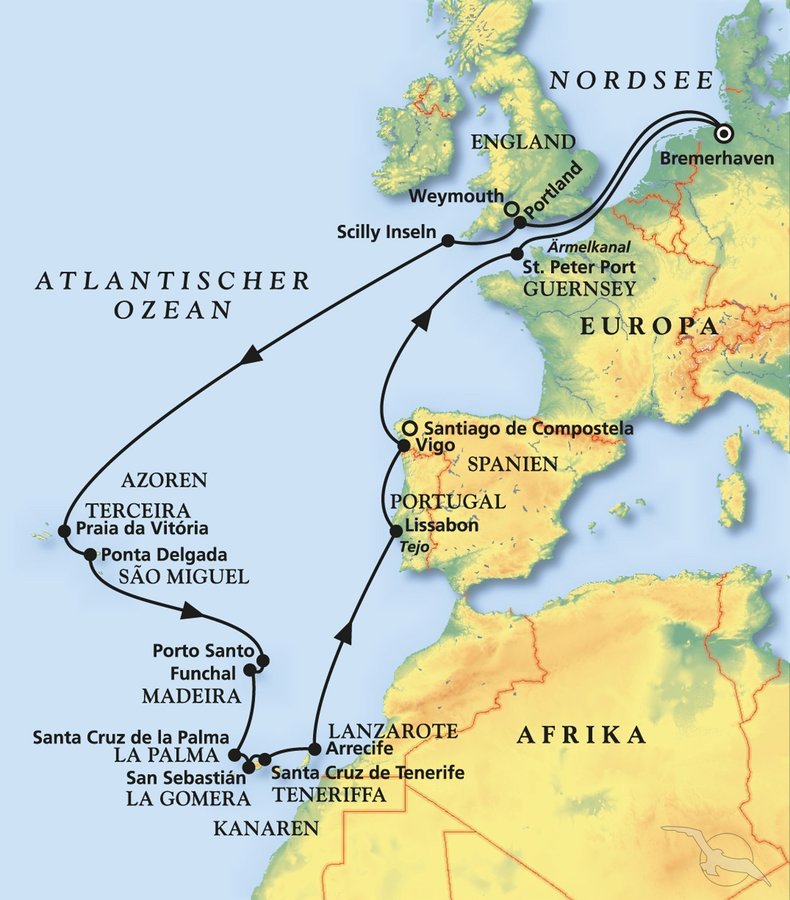 Reise: Reise-Nr.: DEU074 - Traumreise zu den Inseln des Atlantiks Datum: Vom 21.05.2023 bis zum 12.06.2023 (22 Tage)