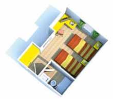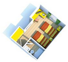 Einige dieser Kabinen verfügen über ein Zusatzbett, meist einklappbares Oberbett | |