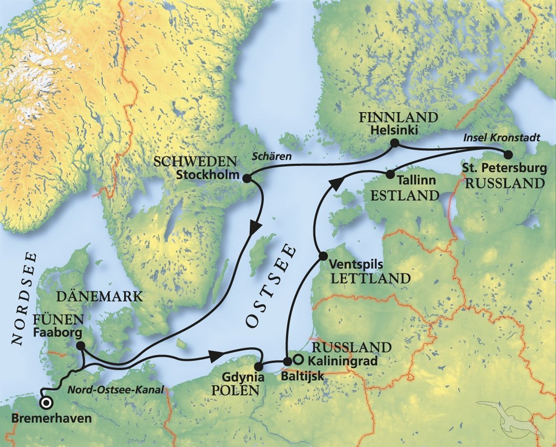 Ein klassisch schöne Kreuzfahrtschiff und eine klassisch schöne Kreuzfahrtregion werden hier miteinander verbunden. Mit Ihrer MS Deutschland erleben Sie die Ostsee auf eine ganz besonders komfortable Art und Weise. Die interessanten Landgänge komplettieren Ihre Traumkreuzfahrt. Die alte Hansestadt Danzig, das mittelalterlich geprägte Stadtzentrum der estnischen Hauptstadt Tallinn, St. Petersburg, von Zarenhand zu einem Stadtjuwel erschaffen, und die königliche Hauptstadt Stockholm sind nur einige der Ziele, die Ihre Kreuzfahrt mit MS Deutschland zu einem rundum gelungenen Reiseerlebnis machen.